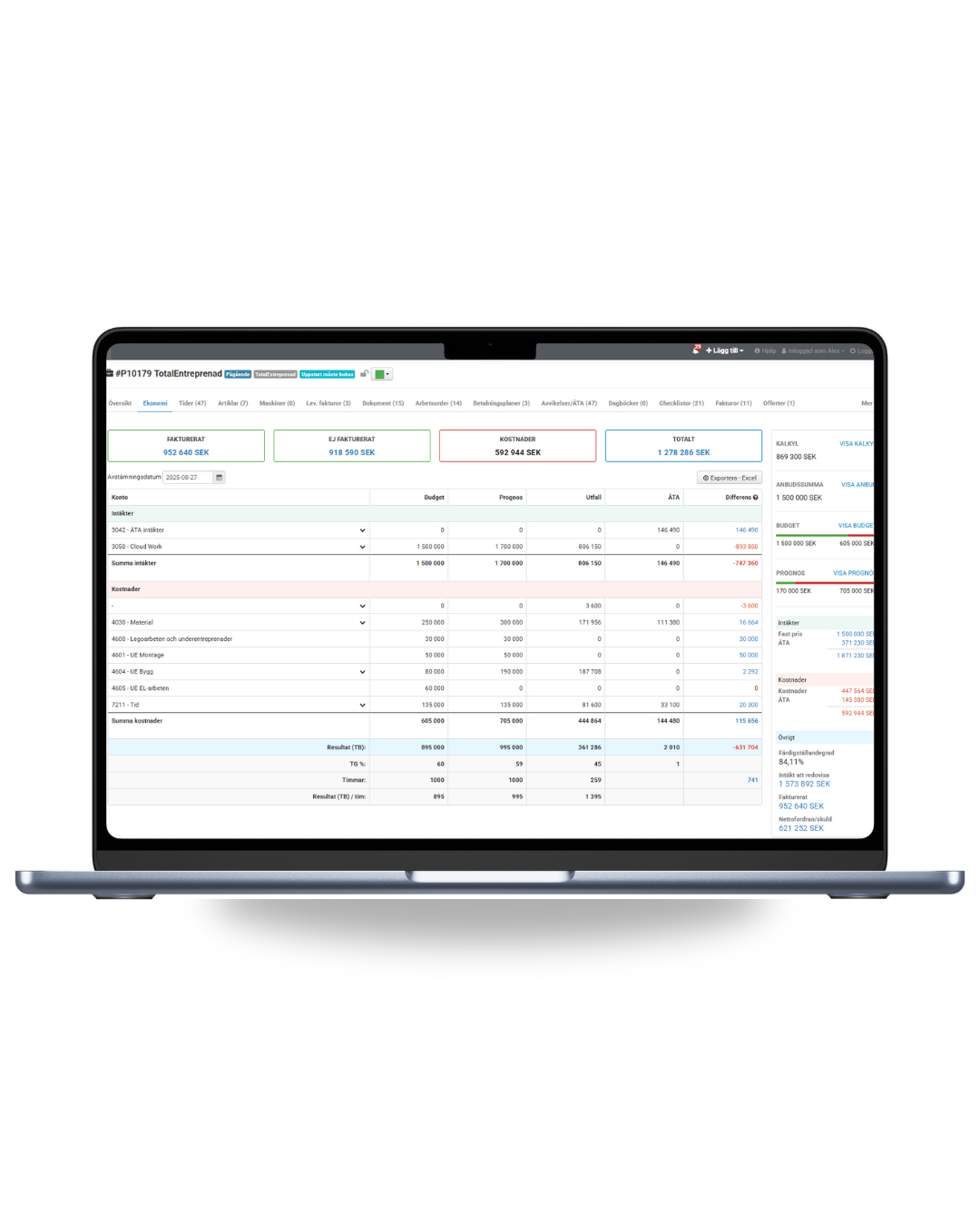 Marknadens vassaste prognosverktyg med utfall på kontonivå. På större entreprenader är kostnadskontroll, budgetuppföljning och smidig hantering av ÄTA-arbeten avgörande. Om du har erfarenhet från något av de rikstäckande entreprenadföretagen kommer arbetssättet att kännas igen. Vårt system är utformat enligt branschens etablerade principer för avstämning, prognoser och successiv vinstavräkning. Med en sömlös integration mot ekonomisystemet minimeras manuellt arbete samtidigt som projektekonomin uppdateras automatiskt i bakgrunden. Dessutom matchas leverantörsfakturor direkt mot rätt projekt – helt utan manuell hantering.