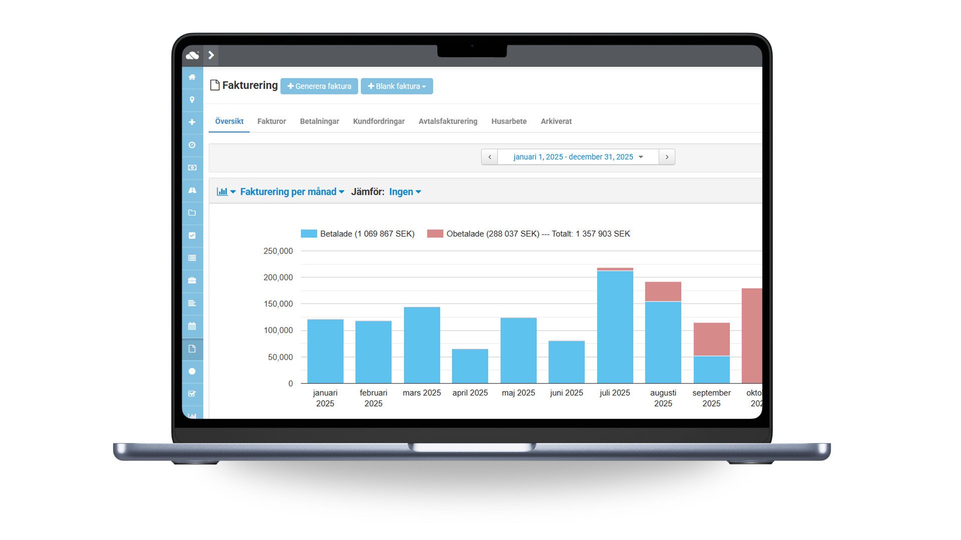 Med smidig fakturering sparar installationsföretag både tid och administration. Skapa fakturor direkt från arbetsorder eller projekt, få korrekta underlag automatiskt och håll koll på betalningar i realtid. Mindre pappersarbete – mer tid till nästa uppdrag.