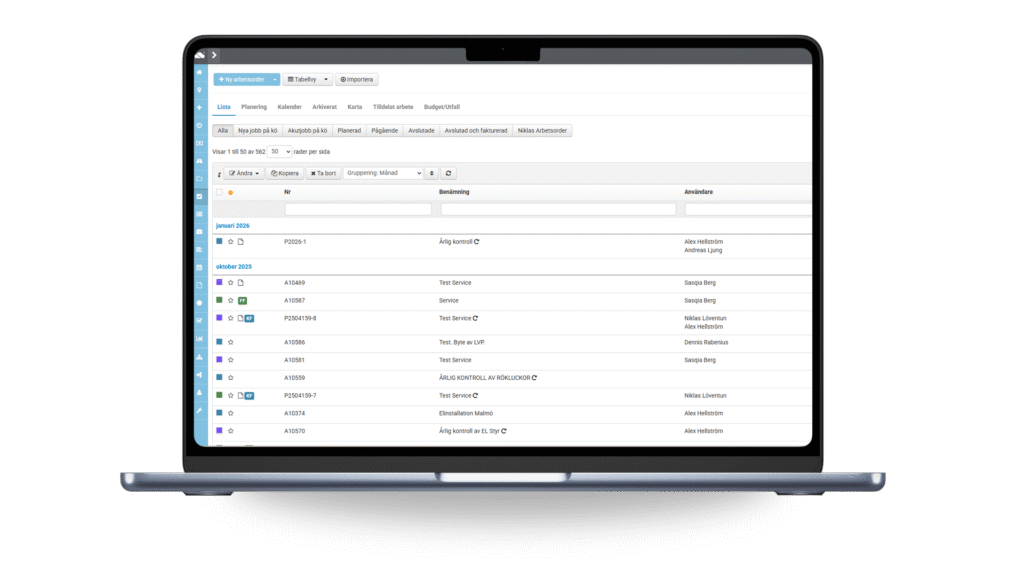 Vårt system är utvecklat speciellt för installatörsföretag och gör det enkelt att planera, följa upp och dokumentera alla uppdrag. Från offert till färdig installation – allt samlat på ett ställe. Spara tid, minska fel och få full kontroll över projekt, material och arbetsorder.